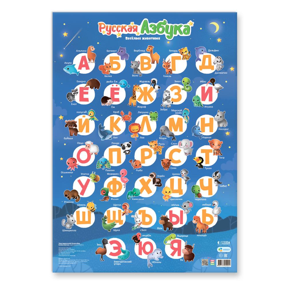 Плакат дидактический. Русская азбука. Весёлые животные. А2