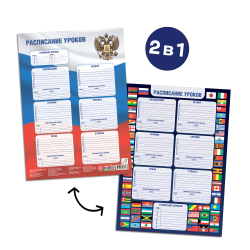 Расписание уроков многоразовое. ДВУХСТОРОННЕЕ. ФЛАГОМАНИЯ+Россия. А3