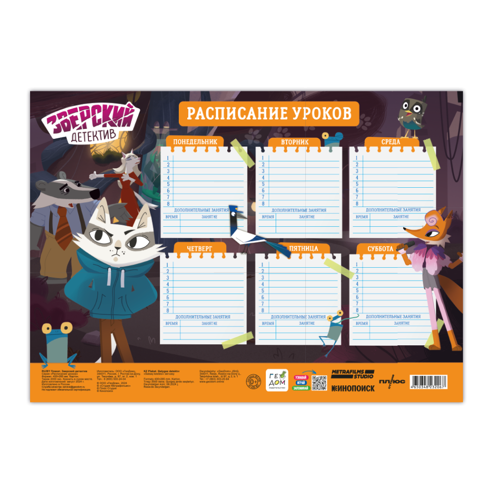 Расписание уроков. Зверский детектив. А3