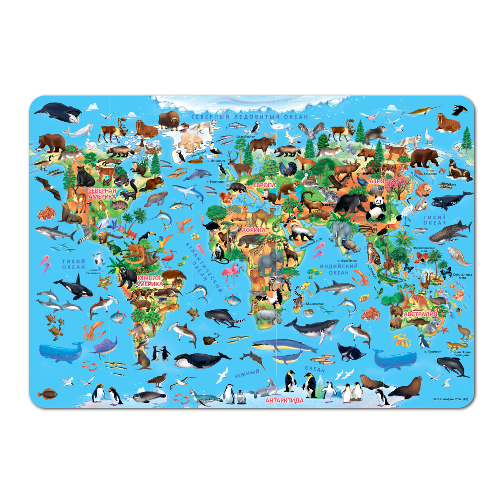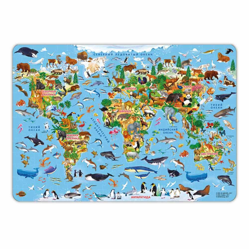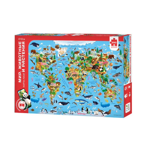 Данная карта-пазл позволяет в процессе интересной игры легко изучить и познать окружающий мир растений и животных! Ваш ребенок в процессе игры с большим интересом изучит флору и фауну на различных материках и островах, а так же обитателей океанов и морей. На карте отражены самые выдающиеся природные объекты (знаменитые водопады, горы, вулканы и т.д.). Играя, ребенок развивает воображение, пространственное мышление, внимание и память! Познавайте окружающий мир вместе с ребенком, собирая данную карту-пазл!