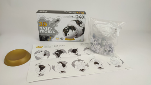 Пазл-глобус 3D. Мир физический. Интерьерный белый. 240 деталей. Диаметр 15 см.