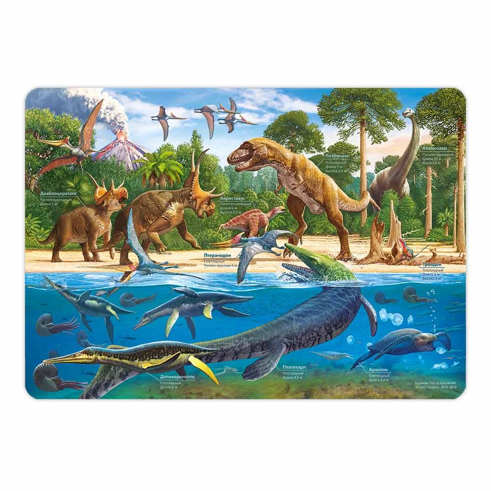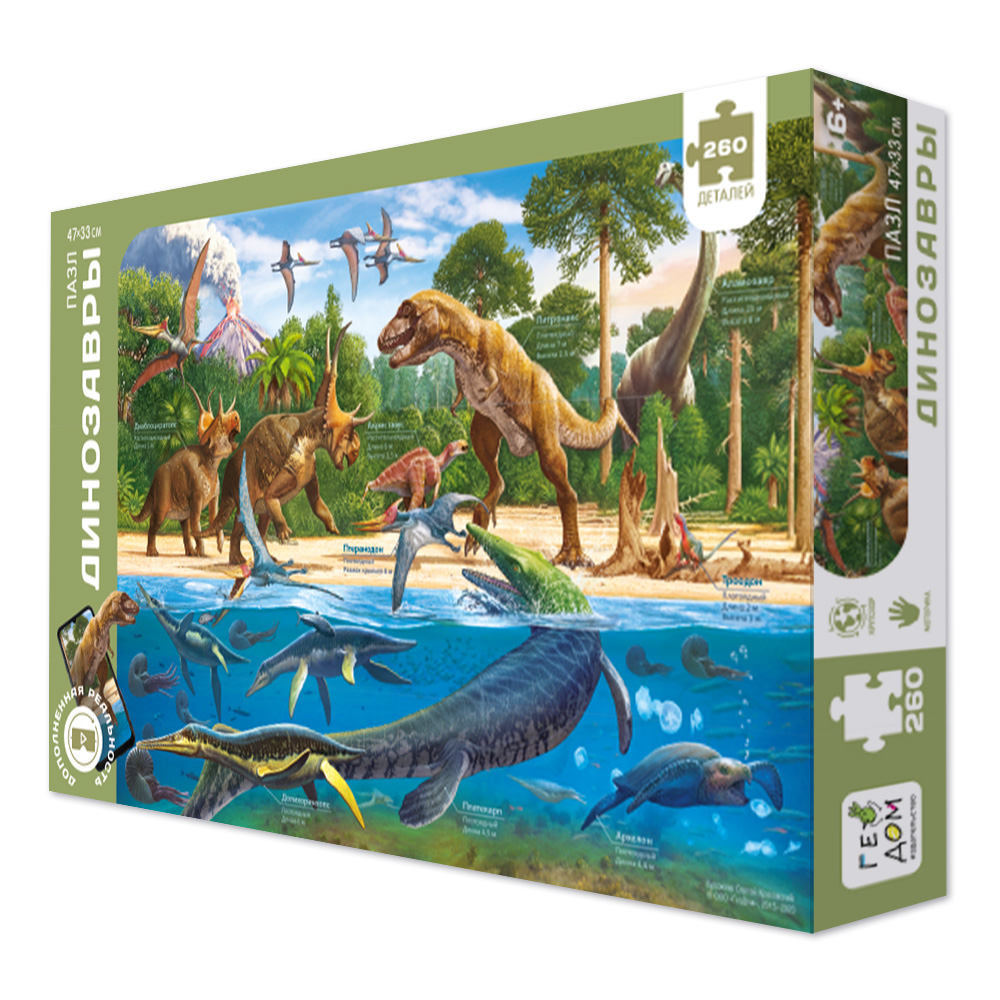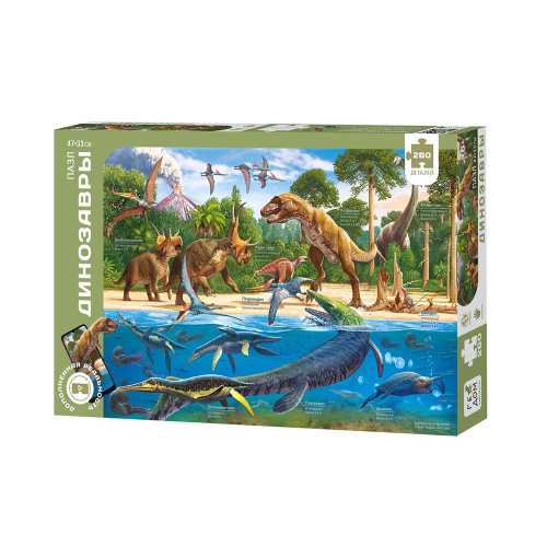 Карта-пазл «Динозавры» состоит из 260 деталей, которые выполнены из высококачественного картона. На пазле представлена реконструкция древних ящеров и их среды обитания, выполненная художником с палеонтологической точностью. Собирая игру-головоломку, Ваш малыш узнает много нового об этих удивительных существах. В процессе игры благодаря деталям разнообразной формы ребенок развивает мелкую моторику, усидчивость, логику и мышление, воображение и способность анализировать.
