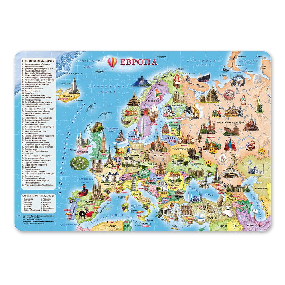 Карта-пазл. Европа. Достопримечательности. 260 дет. 47х33 см. ГЕОДОМ