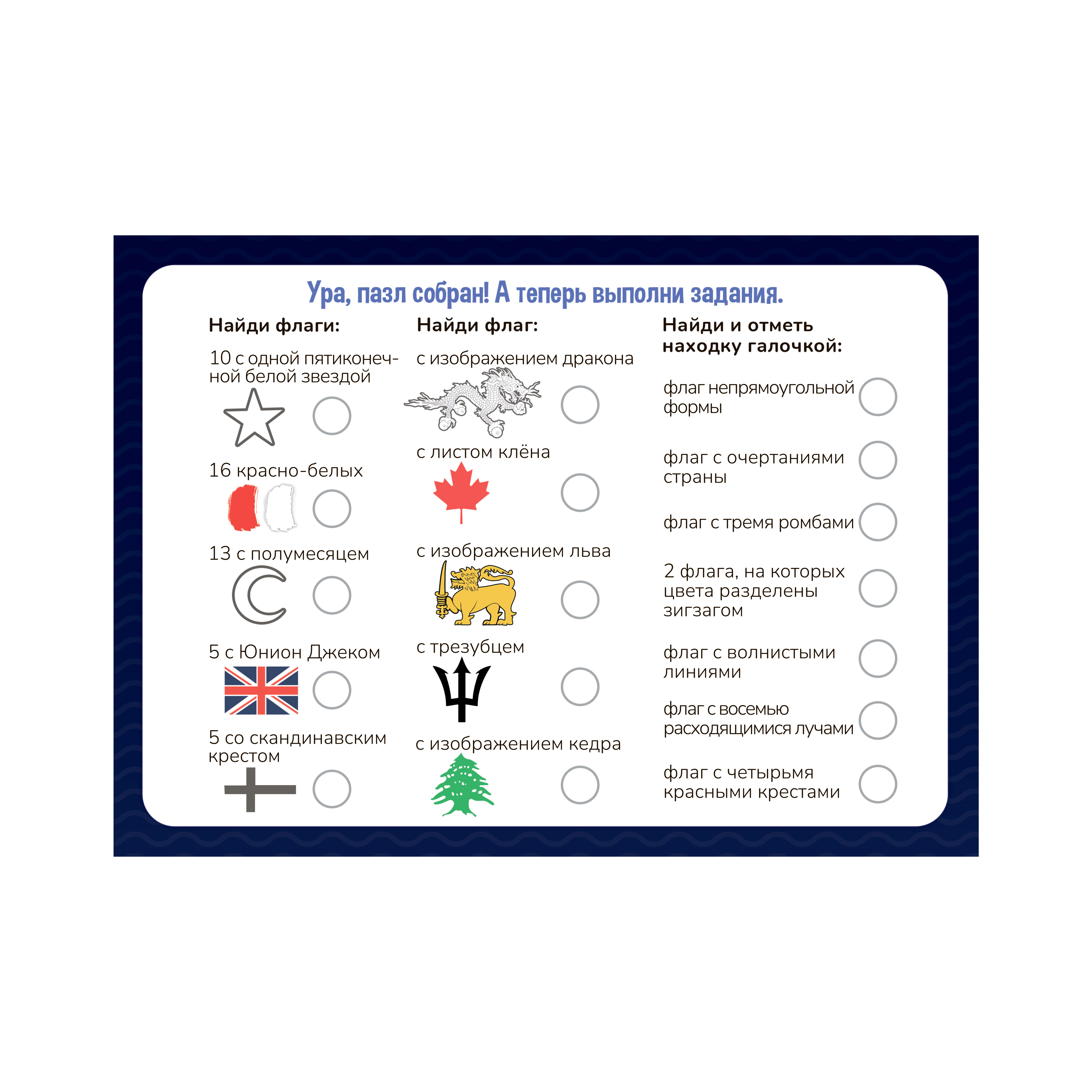 • листовка с заданиями