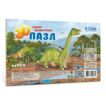Пазл деревянный 3D. Бронтозавр. Серия Мини-животные. Размер 11,5х18,5 см. ГЕОДОМ