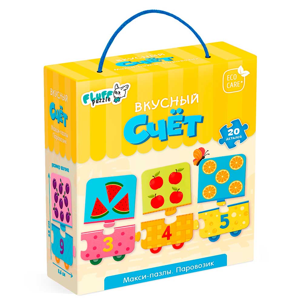 Пазл-макси в коробке с веревочной ручкой. Паровозик. Вкусный счёт. 20 деталей.