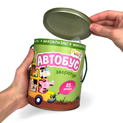 Ваш ребенок любит приключения ? Отправьте его в путешествие вместе с забавными животными, не выходя из дома! "Зверотур. Автобус" - макси-пазлы с животными под брендом Fluff Puzzle, которые точно увлекут и развеселят Вашего маленького путешественника. Макси-пазлы для детей развивают мелкую моторику, внимание, память и концентрацию, тренируют усидчивость и полезный навык заканчивать начатое, приучают к порядку и организованности. Красочный тубус со шнурком выглядит празднично и интересно, его так хочется открыть и посмотреть: Что же внутри? В отличии от картонной коробки, тубус компактно поместится на полке, не порвется и не помнется, надолго сохранив товарный вид. Макси-пазлы - полезный и нескучный подарок на любой праздник; они отлично подходят для домашнего досуга и для занятий в детском саду. Серия Макси-пазлы "Зверята" представлена 4 вариантами: "Автобус", "Самолет", "Пароход", "Поезд". Рекомендованный возраст - 3+; 25 крупных деталей, размер картинки в собранном виде - 32Х47,5 см