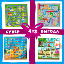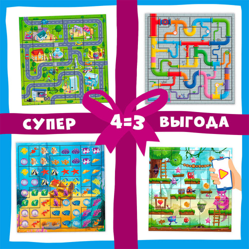 Компл. Пазл листовой с доп.реальностью. Головоломка х 4шт. Город+Водопровод+В океане+Монстрики