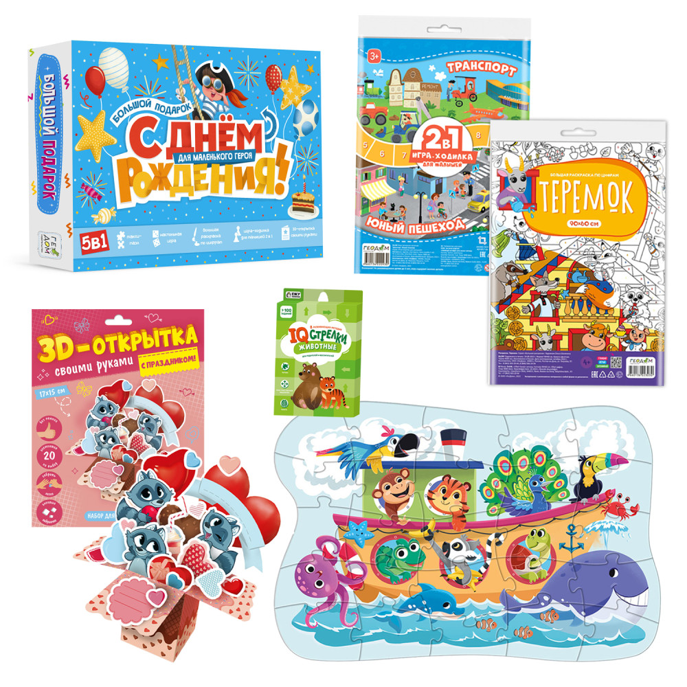 Подарок в коробке с рукавом. БОЛЬШОЙ ПОДАРОК для маленького героя. С днем рождения! 5в1.