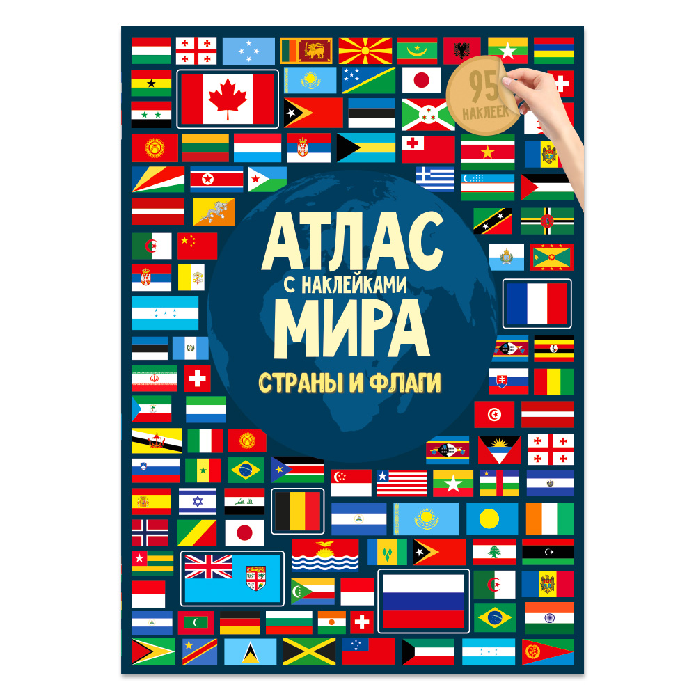—Атлас с наклейками. Страны и флаги. Формат 21*29,7. 95 наклеек.