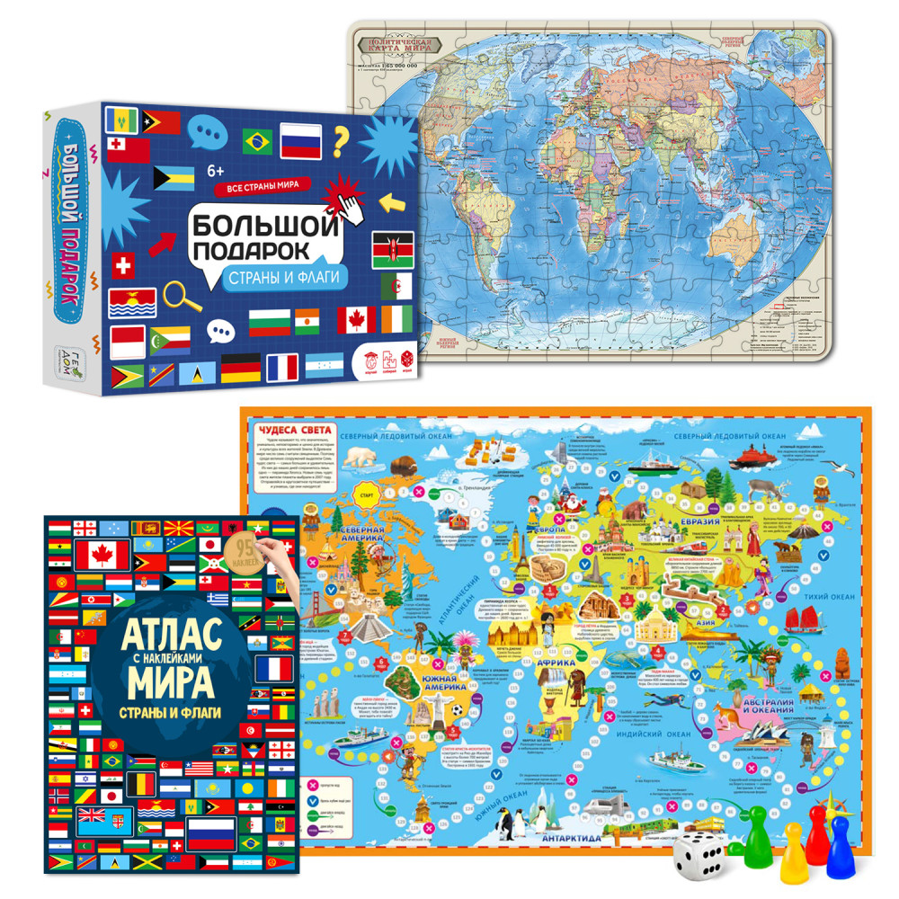 Подарок направлен на изучение политического устройства мира и знакомство со странами и их флагами.