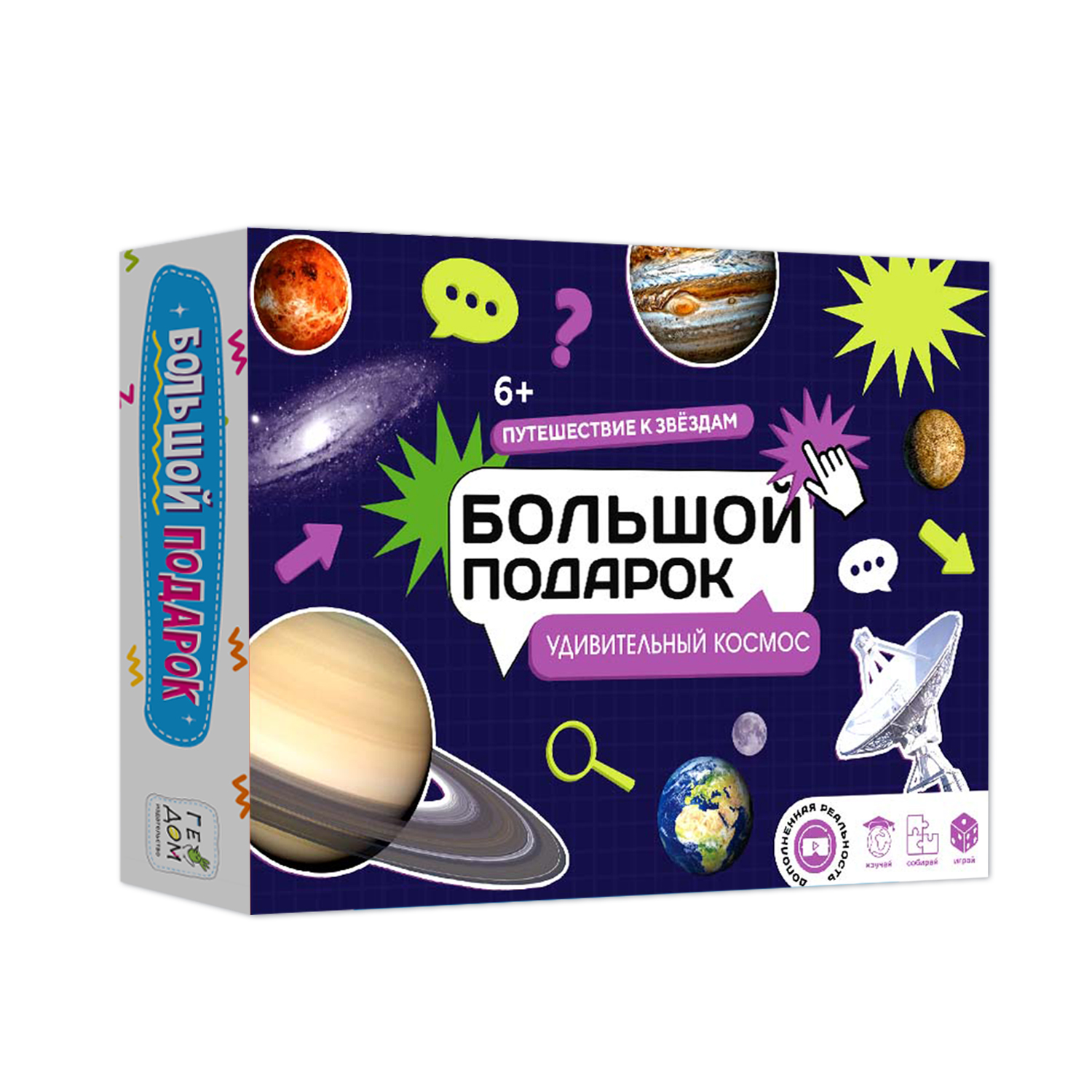 Подарок в коробке с рукавом. БОЛЬШОЙ ПОДАРОК с дополненной реальностью. Удивительный космос. 3в1.