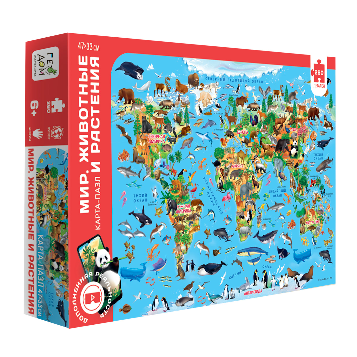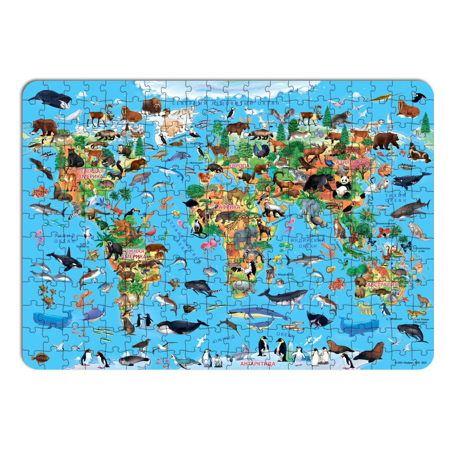 — Карта-пазл. Мир-животные и растения. 260 деталей. 47х33 см