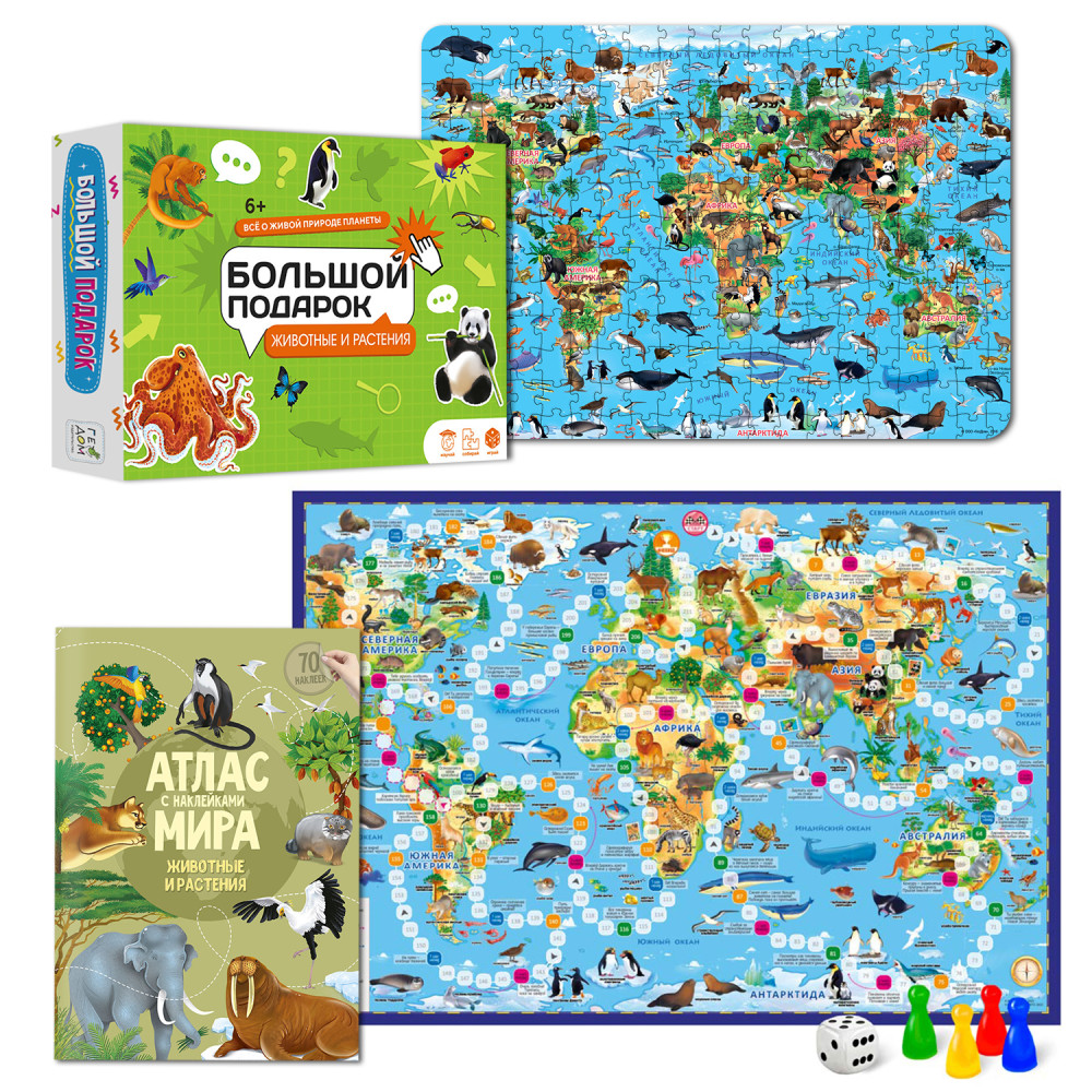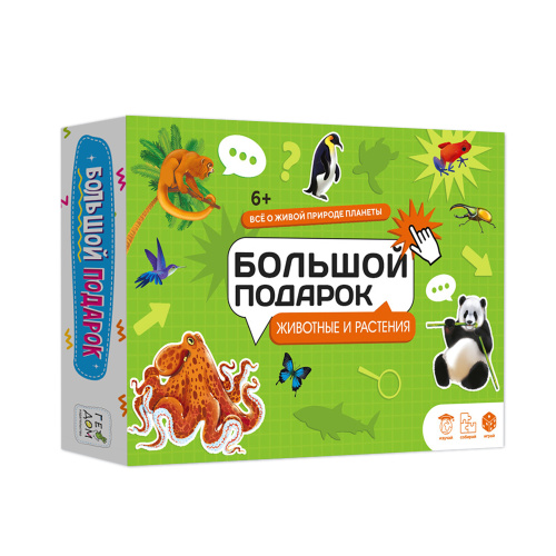 Подарок в коробке с рукавом. БОЛЬШОЙ ПОДАРОК с дополненной реальностью. Животные и растения.3в1.