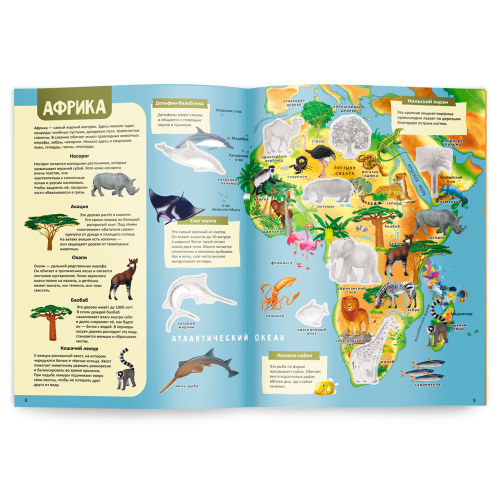 Атлас с наклейками можно использовать как первое учебное пособие по географии и окружающему миру, он содержит не только сведения о животных и растениях, но и о географии Земли, воспитывает эстетический вкус и интерес к живой природе.