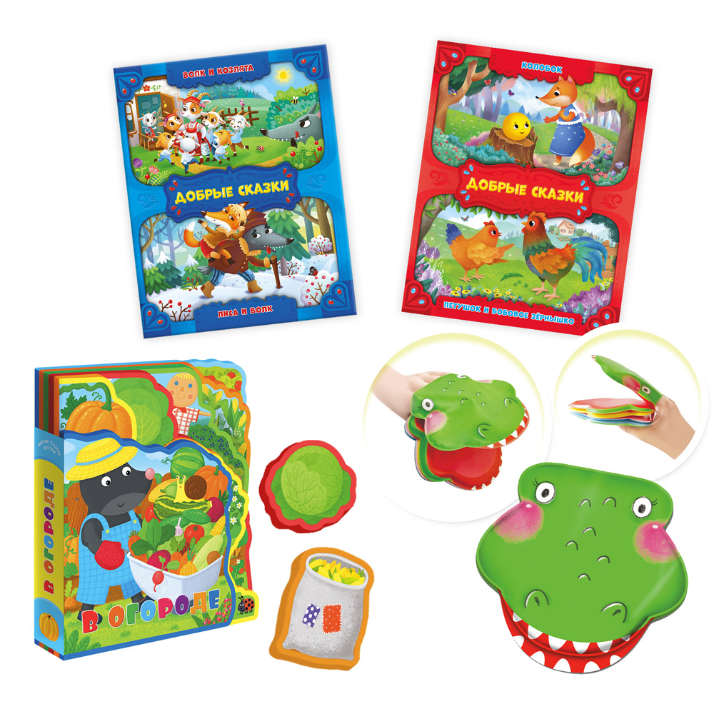 1. Книжка добрые сказки 2в1 "Колобок/Петушок и бобовое зёрнышко"