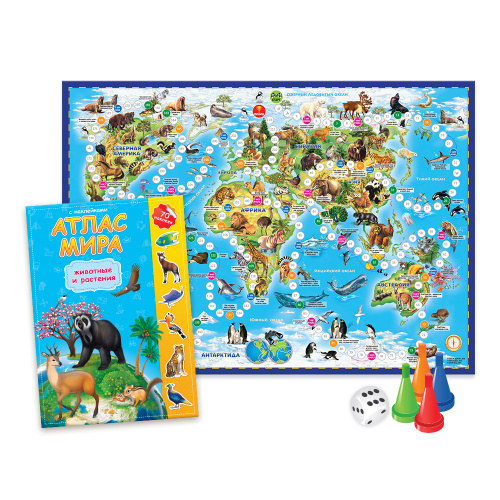 Настольная игра-ходилка «Животный мир земли» (смотреть правила) создана на картографической основе. В доступной и интересной форме представлено расположение материков и океанов, показаны представители флоры и фауны. Бесспорное преимущество игры и в ее оформлении – художественно выполненная, красочная, на качественном картоне – прослужит долго и поможет организовать досуг.