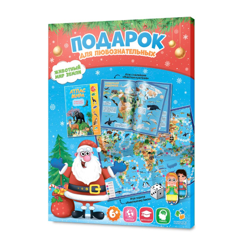 Подарок для любознательных Новогодний. Животный мир Земли. Атлас с наклейками + Игра-ходилка. ГЕОДОМ