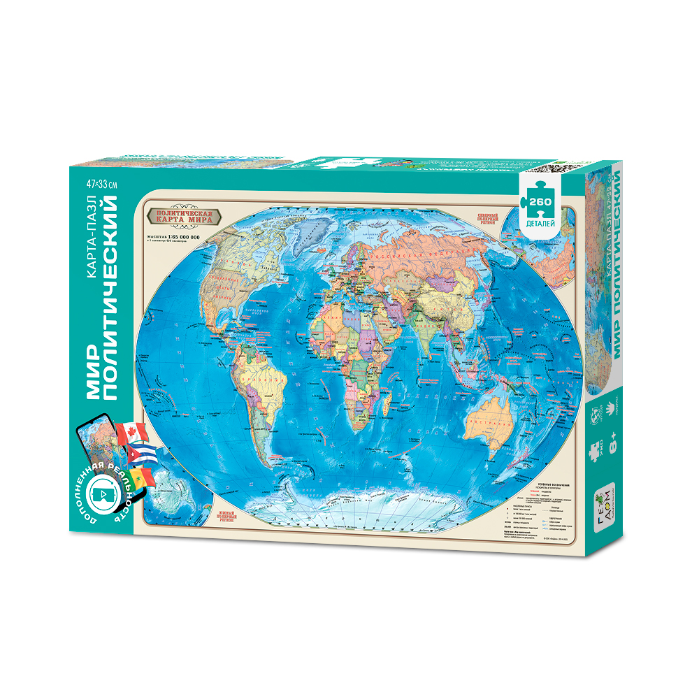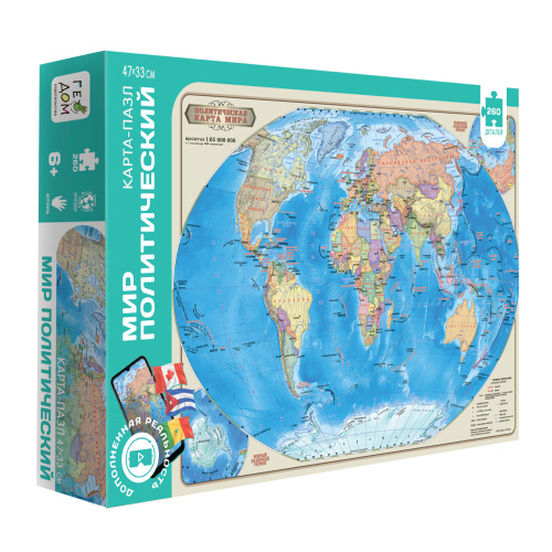 Пазл-карта с доп.реальностью. Мир политический. 260 деталей.