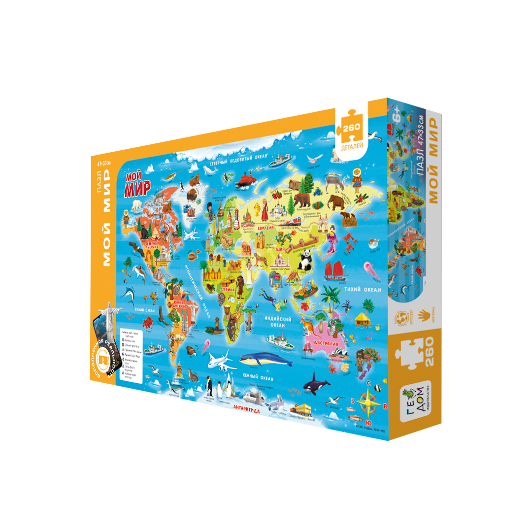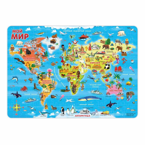 Пазл "Мой мир" поможет весело и познавательно изучить с ребенком окружающий мир. Собирая яркие и красочные детали головоломки, ребёнок сможет запомнить как выглядят континенты и узнать какие интересные особенности и достопримечательности на них находятся. Пазл помогает развить мелкую моторику рук, воображение и кругозор.