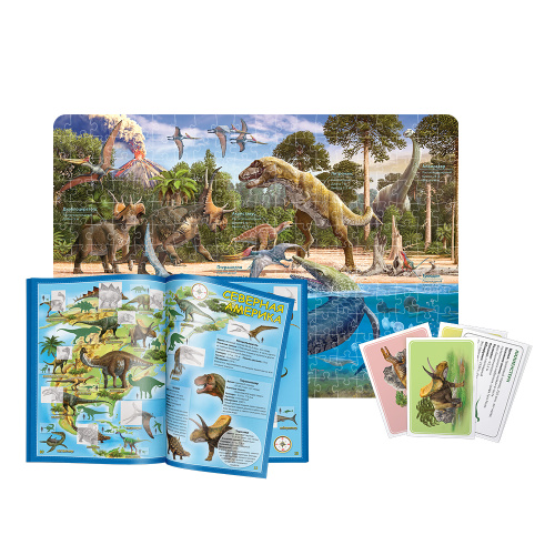 На пазле «Динозавры» представлена реконструкция древних ящеров и их среды обитания, выполненная художником с палеонтологической точностью. Собирая игру-головоломку из 260 деталей, ребенок узнает много нового об этих удивительных существах.