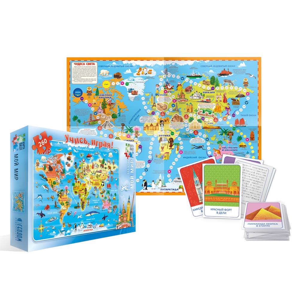Подарок большой Новогодний. Мой мир. Пазл 260 дет + Игра-ходилка с фишками + Игровые Карточки