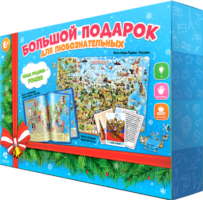 Подарок большой Новогодний. Наша Родина-Россия. Пазл 260 дет + Атлас с наклейками + Игровые Карточки