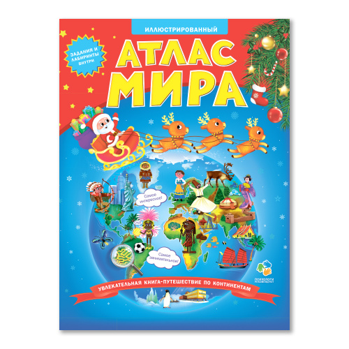 Атлас Мира Иллюстрированный. В твердой обложке + Новогодняя суперобложка. А4 64 стр.