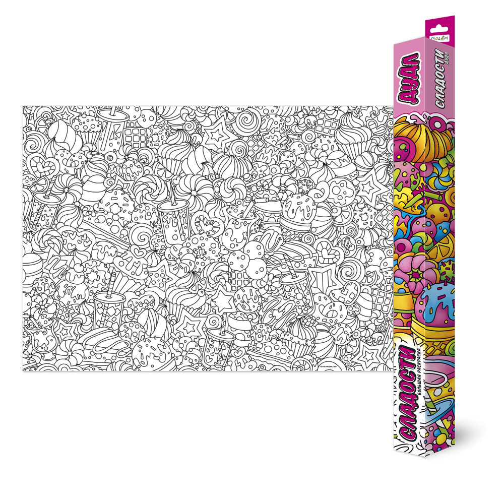Раскраска-плакат в коробке Дудл. Сладости. Серия Большая раскраска. 101х69 см.