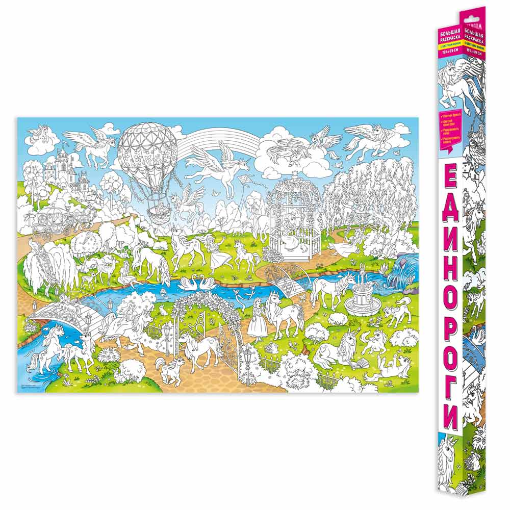 Эта большая раскраска приглашает в сказочную страну! Здесь на каждом шагу ждут удивительные и прекрасные существа – единороги, здесь можно совершить полет на воздушном шаре или прогулку в карете, прокатиться на качелях под кроной волшебной ивы. Запасайтесь карандашами и фломастерами и развивайте творческие способности своего ребенка с удовольствием. Фон раскраски частично окрашен в цвет, что делает процесс раскрашивания очень увлекательным. Большая раскраска ждет свою маленькую волшебницу: пусть сказка оживет!