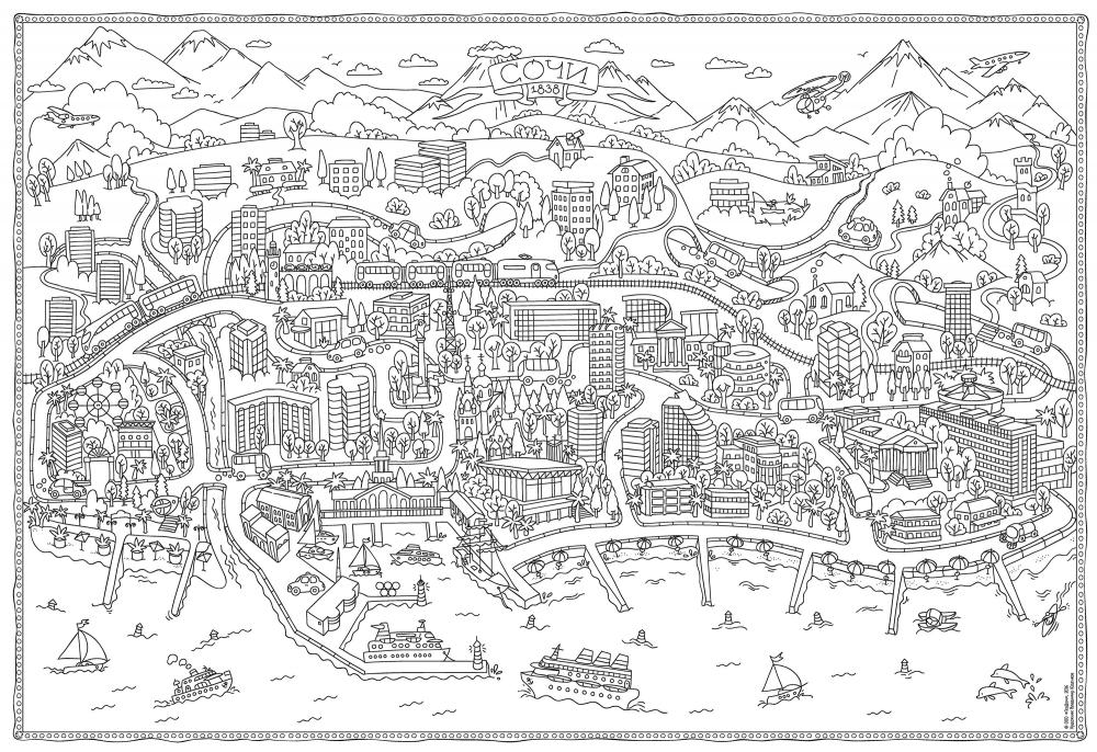 Новая карта-раскраска "Сочи" - не просто раскраска, а настоящее путешествие! Отправьтесь всей семьей на прогулку по городу, изучите достопримечательности и интересные места, пройдитесь по залитой солнцем набережной, наполните город яркими красками! Раскраска подарит новые впечатления и увлечет вашего ребенка. Сюжет раскраски будет интересен и мальчикам и девочкам, а родители смогут рассказать интересную историю о городе и о местах, в которых они побывали.