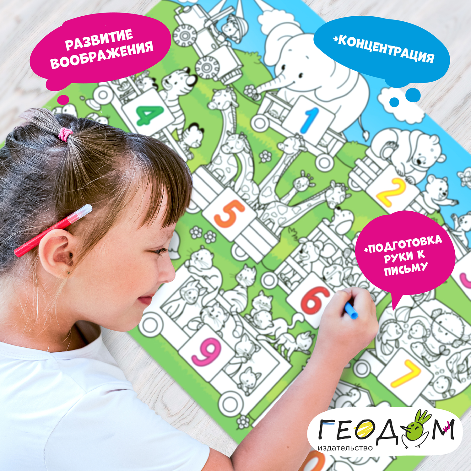 Большой размер (70х50 см), ламинированная основа, чёткие и широкие контуры, интересный обучающий сюжет – всё, что нужно для приятного проведения времени всей семьёй