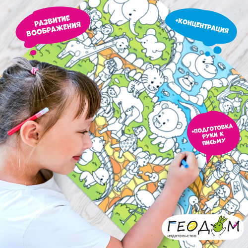 Раскрашивать плакат, можно на любой поверхности, плакат с ламинированной основной, не рвётся, подходит для всех видов красок и фломастеров.