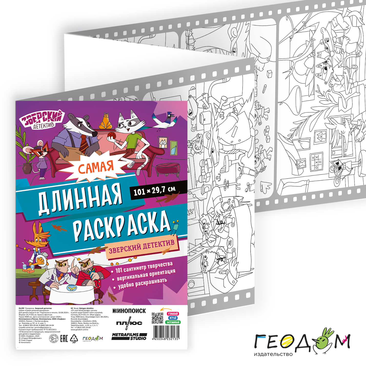 Раскраска-плакат в пакете. Самая длинная раскраска. Зверский детектив. 30х101 см.