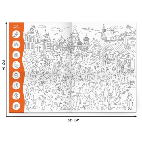 Большая раскраска с заданиями – это увлекательное путешествие в мир русской зимы и занимательный досуг для всей семьи! Найдите всех матрёшек, сосчитайте людей в ушанках, пройдите лабиринт и решите головоломку. На картинке больше 50 персонажей! Выполняйте задания, находите важные детали и раскрашивайте новогоднюю Красную площадь – вместе! Раскраска развивает мышление, мелкую моторику, творческие способности и помогает готовить руку к письму. Рекомендованный возраст: 6+.
