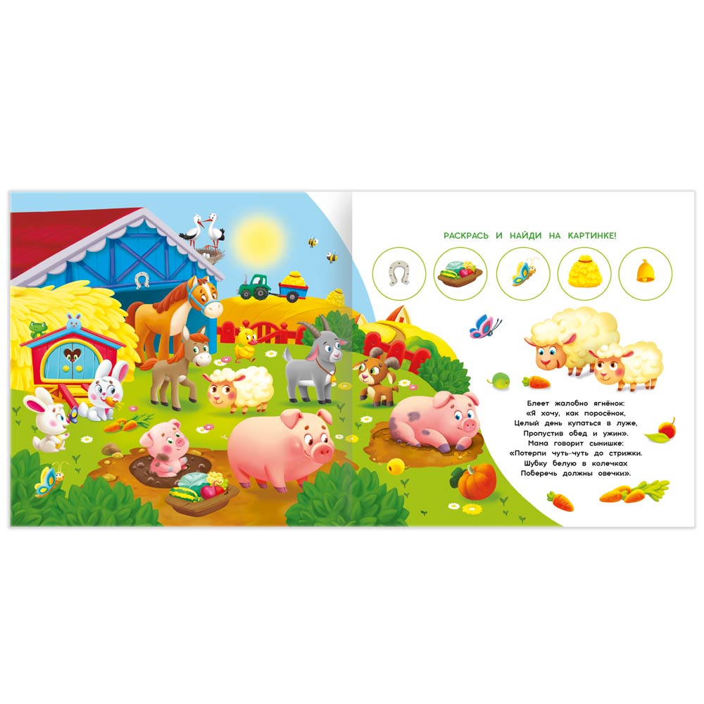 Многоразовая водная раскраска с заданиями поможет малышу почувствовать себя настоящим волшебником! Проведите по листу мокрой кисточкой – и он превратится в яркий рисунок. А когда картинка высохнет, её снова можно будет раскрасить. Книжка-раскраска с заданиями и развивающими стихами познакомит ребёнка с животными на ферме – читайте, раскрашивайте и ищите, кто спрятался на страницах книжки! Рекомендованный возраст: 3+.