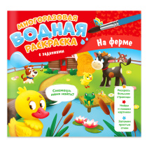 Раскраска многоразовая водная с заданиями. Раскрась и узнай. На ферме. 24х23 см. 10 стр.