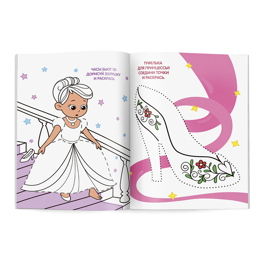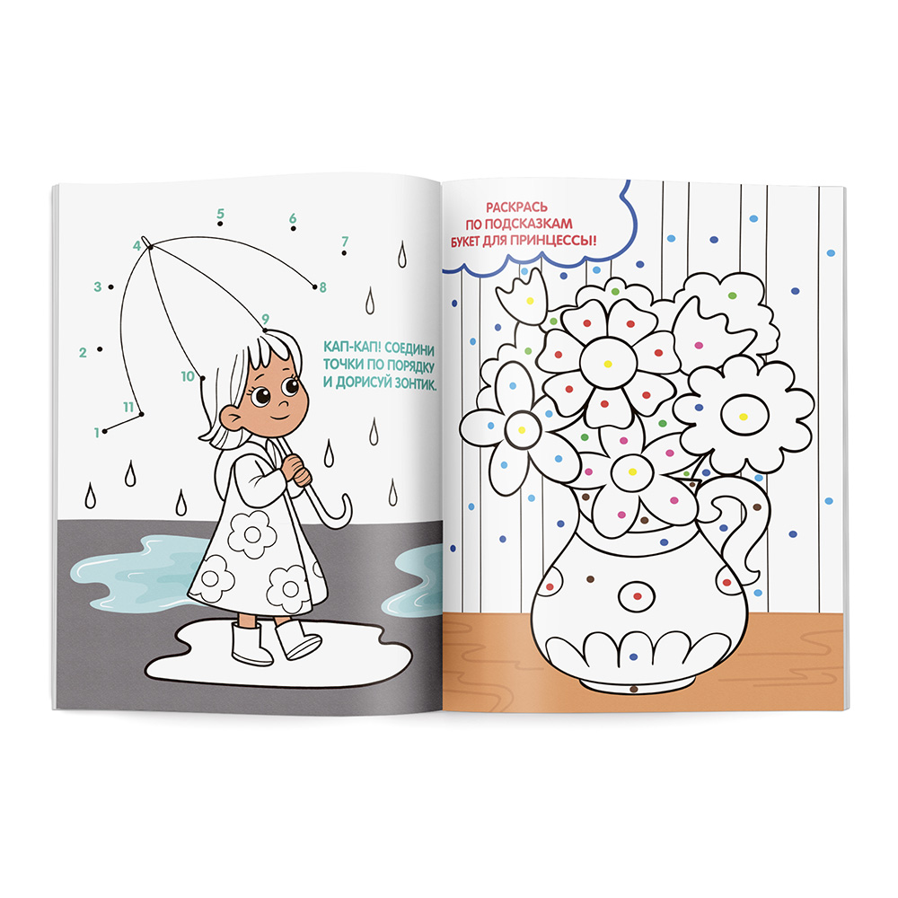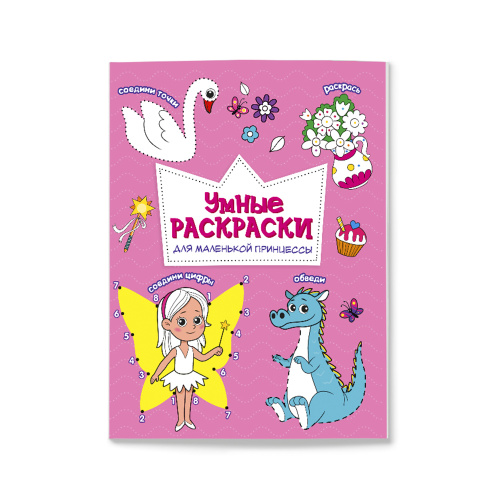 Серия «Умные раскраски» –интересное и полезное занятие для ребенка. Каждый разворот тренирует новый навык: «соедини по цифрам» поможет изучить счёт, «дорисуй по точкам и пунктирам» подготовит руку к письму, а разукрашивание по цветным подсказкам сформирует восприятие цвета у маленького художника! За таким творческим занятием время пролетит увлекательно и незаметно! Раскраска "Для маленькой принцессы" перенесет ребенка в волшебный сказочный мир, где перед Вами развернутся удивительные приключения Принцессы! Вам предстоит дорисовывать и разукрашивать главную героиню, её друзей и элементы чудесного мира.