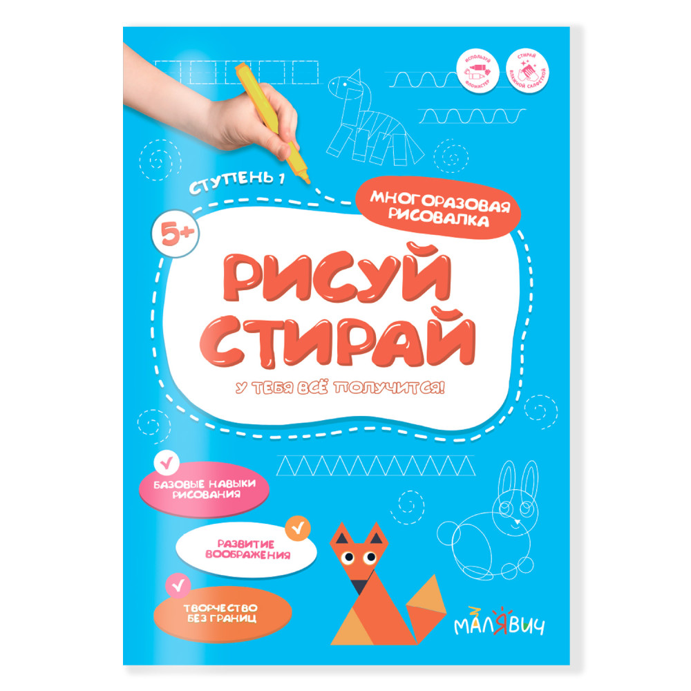 «Рисуй-стирай» – это многоразовая рисовалка для детей старшего дошкольного возраста. Для рисования используется фломастер на водной основе, который легко стереть с покрытия влажной салфеткой. Обучающие и занимательные упражнения даны по принципу от простого к сложному. В тетради первой ступени ребёнок обводит линии, повторяет и сам придумывает несложные узоры по образцу, учится рисовать шаг за шагом.